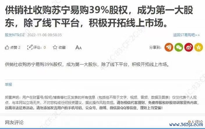 随后,一则传闻不胫而走。传闻宣称,“供销社收购苏宁易购(002024)39%股权,成为第一大股东,除了线下平台,积极开拓线上市场”。