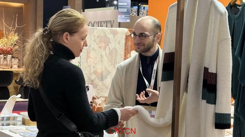 在浦东嘉里城,定制的触角进一步延伸至羊绒服饰与家居。Sandriver沙涓羊绒以高端羊绒产品为核心,从私人服装、围巾到羊绒壁布、窗帘、沙发、床毯,几乎可以用羊绒“织造”出一整个家。 更具标志性的是,其定制采用氆氇非遗工艺,让非遗技艺真正走进日常生活场景。