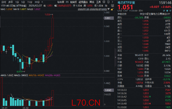 二、【电力涨停潮!牛股七连板!硬核利好来袭,电力ETF华宝(159146)放量猛涨2.64%,开年四连阳创新高!】