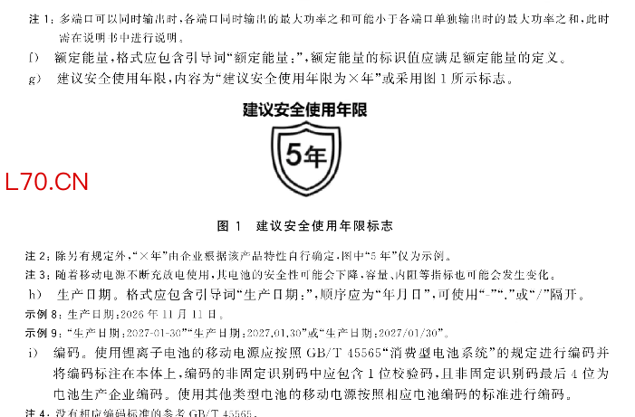 为方便消费者查询移动电源电池品牌等核心信息,《技术规范》不但推行产品唯一性编码管理,要求移动电源标注专属“身份证号码”,也要求移动电源上标注建议安全使用年限,提醒消费者关注老旧产品安全,及时更换新的移动电源;为从根源上提升移动电源的安全水平,《技术规范》还明确要求加强对原材料、生产过程进行全流程管控。