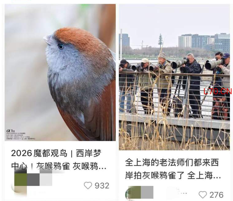 今年3月社交平台上的“明星”——灰喉鸦雀。在我国的自然分布区集中在四川、云南等西南低山森林地带,是一种本地留鸟,不具备长途迁徙习性。正常情况下,上海市民几乎不可能在野外见到这种鸟,所以,基本可以确定它是人工饲养后逃逸。