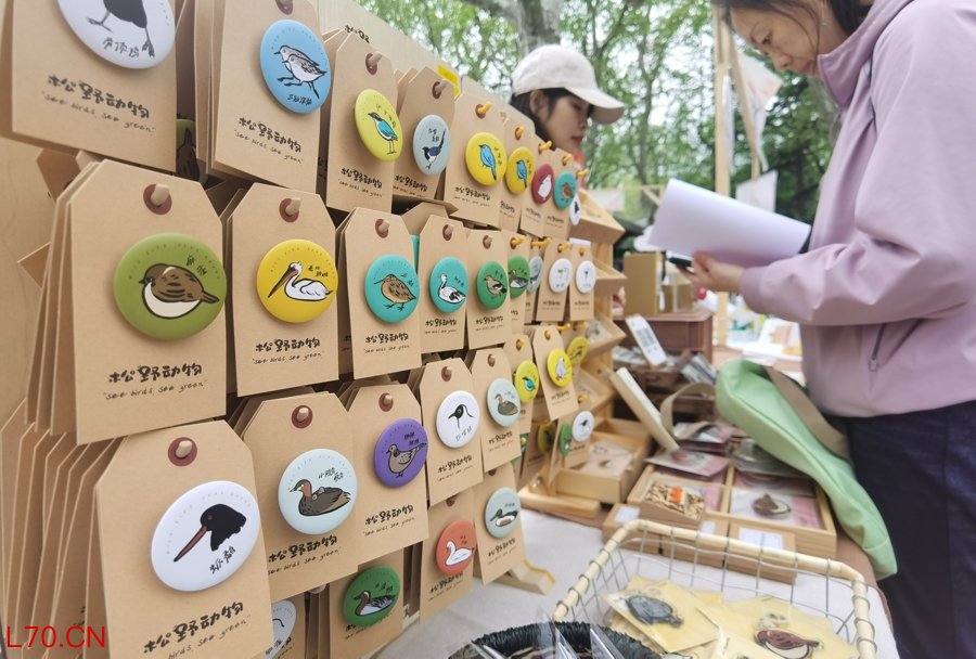 观鸟爱好者郑少丽同时是“松野动物”的主理人,她独立开发出了卡通徽章、鸟蛋微型绘本、鸟喙胶带、观鸟故事明信片等文创周边。 陈玺撼摄