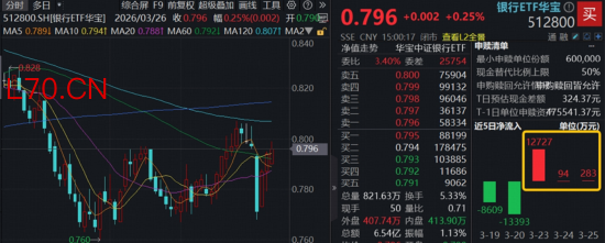 当前全球地缘局势紧张,市场波动加大,银行板块防御属性突出,受到资金关注。上交所数据显示,银行ETF(512800)近3日连续获资金净流入1.31亿元。