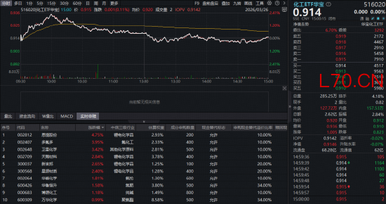 成份股方面,锂电集体大涨,氟化工等板块亦涨幅居前。节奏收盘,恩捷股份飙涨4.75%,多氟多、卫星化学双双大涨超3%,天赐材料、新宙邦、星源材质等涨超2%。