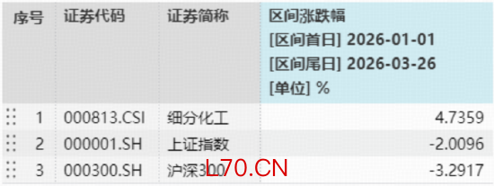 数据来源:Wind,取值区间为2026.1.1-2026.3.25,细分化工指数近5个完整年度涨跌幅分别为:2021年,15.72%;2022年,-26.89%;2023年,-23.17%;2024年,-3.83%;2025年,41.09%。指数成份股构成根据该指数编制规则适时调整,其回测历史业绩不预示指数未来表现。